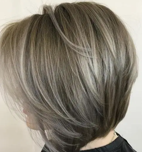 很多分层的鲍勃发型在前面较长,在后面较短,这种中等长度的鲍勃就是这种情况。时髦的风格得益于长而稀疏的层次,这些层次已被突出显示并从面部刷掉。