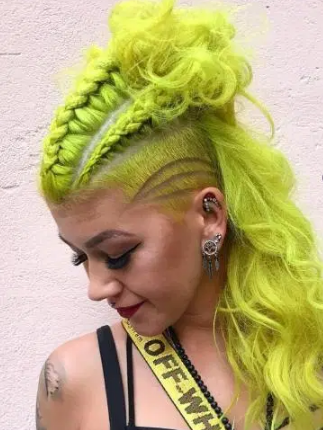 测试顶部带有辫子的剃毛侧时,请考虑仅使头发的前部分编辫,不编织后部的末端和头发,以形成漂亮却未经修饰的样式。染发像霓虹绿或黄色这样的大胆颜色是突出剃光侧面朋克风的绝佳方法。