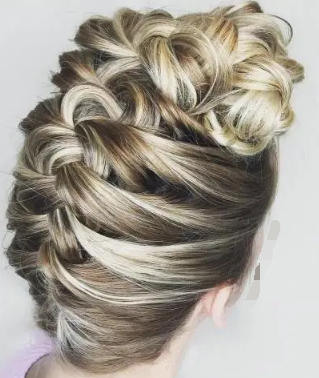 颠倒的法国辫子可能是您的攻略重点,也可能只是补充内容。在这种编织中,大型复杂的发bun成为众人瞩目的焦点,而脖子上的小辫子仅是一个有趣的细节,与闪闪发亮的发夹搭配。