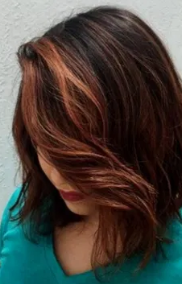 这种脸部框架式的衬托可为天然棕色头发上的红色精致色调带来柔软感。同时,蓬松的质感平衡了这种柔软度,使大多数黑发人都喜欢穿这种时尚醒目的外观!