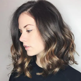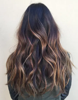 深色的发束中编织的焦糖色色调营造出有趣的对比,营造出波浪状剪裁的轻盈质地。从zy懒的日子到约会,波浪状的发esse都已准备就绪。即使将这些较长的层放入马尾辫中,颜色仍会发光。