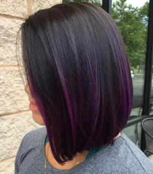 丰富的紫色高光与黑色的头发形成强烈对比。得益于深色直发所提供的空白帆布,亚洲美丽的头发容易拔出。这种微妙的平衡感很好,读起来很有趣。