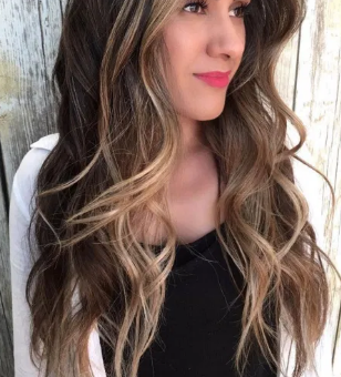 使长发黑发看起来令人惊艳并不需要太多。但是,如果您必须这样做,那么简单的操作(如凌乱的桶状卷发,金发和焦糖色的亮点)就可以解决问题。在有限的亮点中,下面的模型表明少即是多。