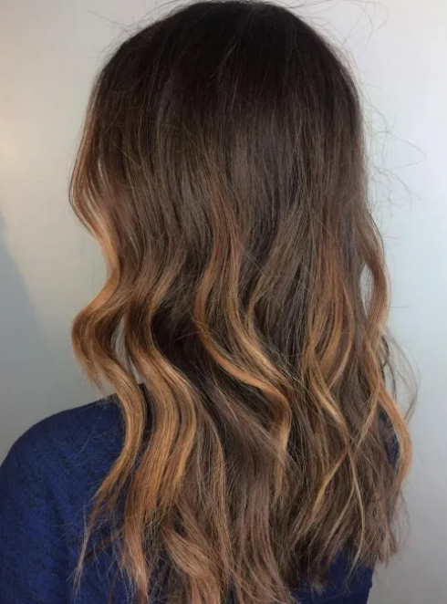 使用部分高光模仿ombre的渐变效果。只需漂白头发上端的末端即可。它增加了有趣的颜色和尺寸,而没有太多的漂白。您将享受两全其美的乐趣。散发波浪效果,营造出性感的质感。