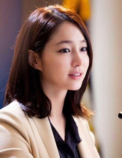 4.蓬松的中长发烫发设计,搭配上气质的偏分刘海,烘托出完美的脸型,深色的头发也增添了不少的时尚感来。