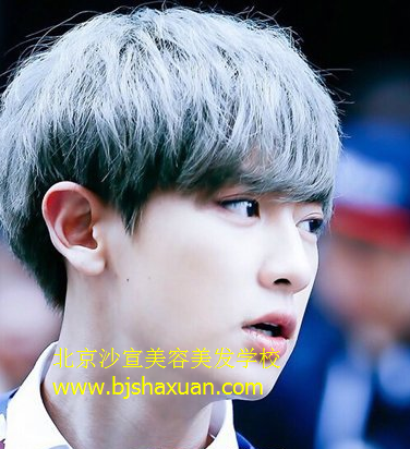 奶奶灰作为男生2017最潮染发颜色之一,在这款齐刘海的短发发型,打造成2017最潮染发颜色奶奶灰之后,也更加时尚。