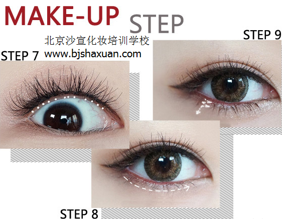 在上眼睑和下眼睑眼尾处叠加浅棕色眼影晕染开,达到增加阴影的效果;