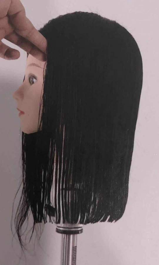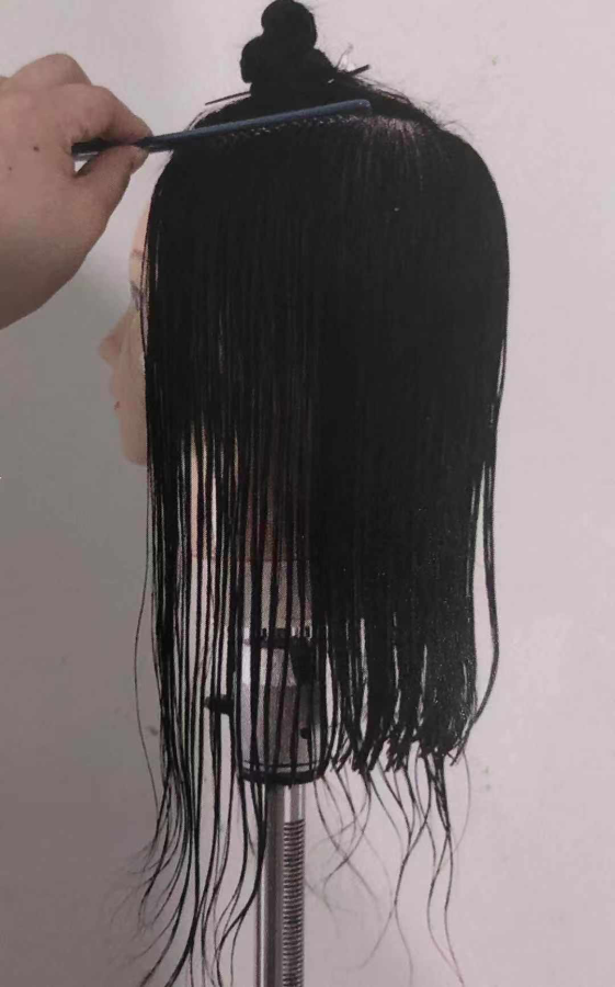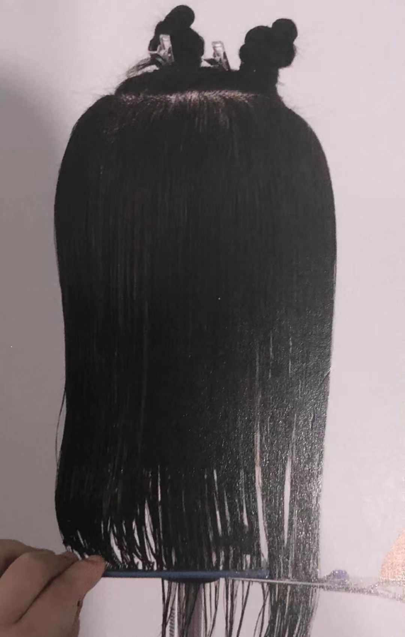 16.梳子梳到外线时也要确保剪切线与分界线(小斜线)一致 。