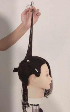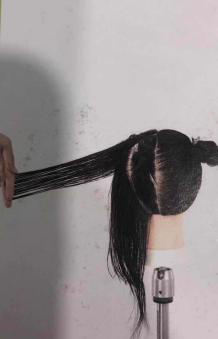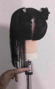 22.取第9片发片,注意修剪时的第1刀保持在中轴线修剪。