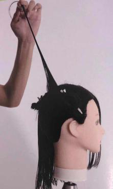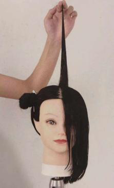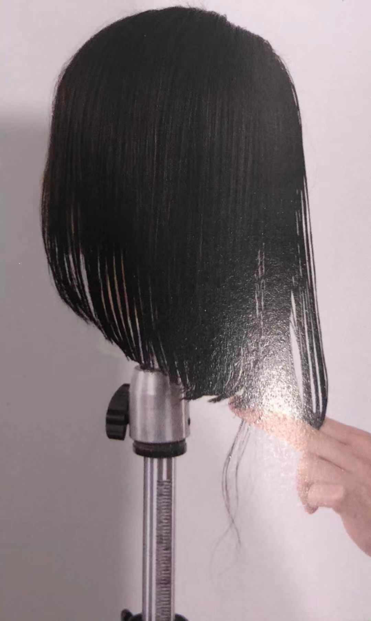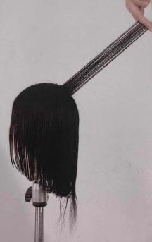 15.取出第5片发片70°提拉修剪,手位要略高于上一片。