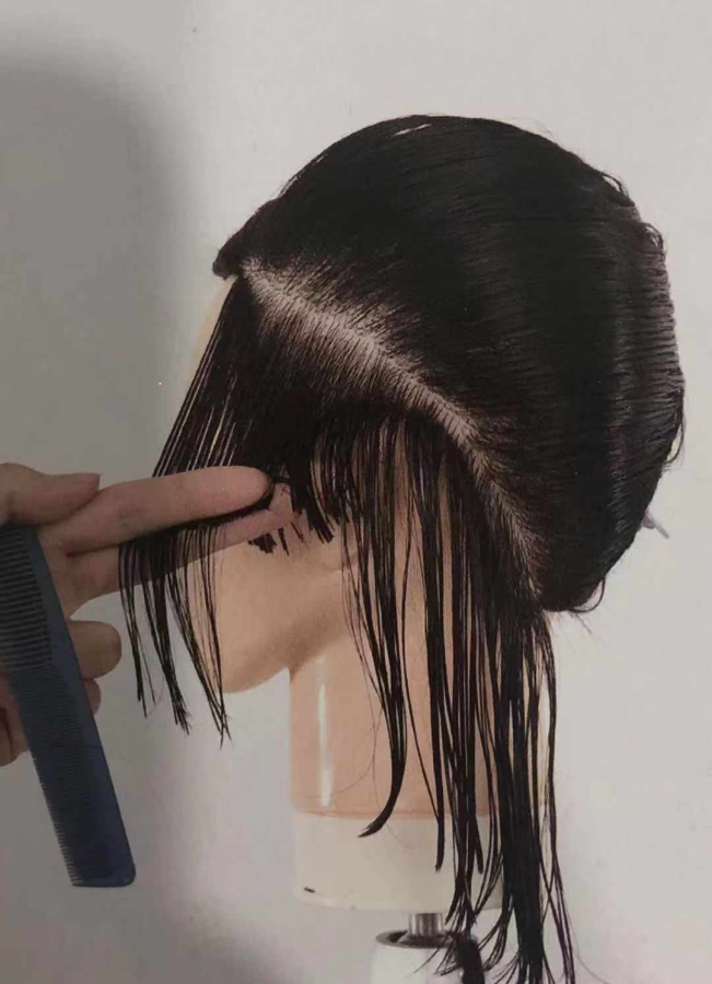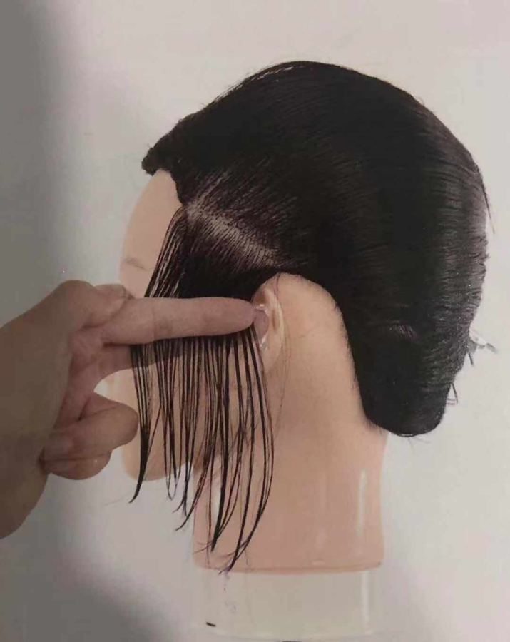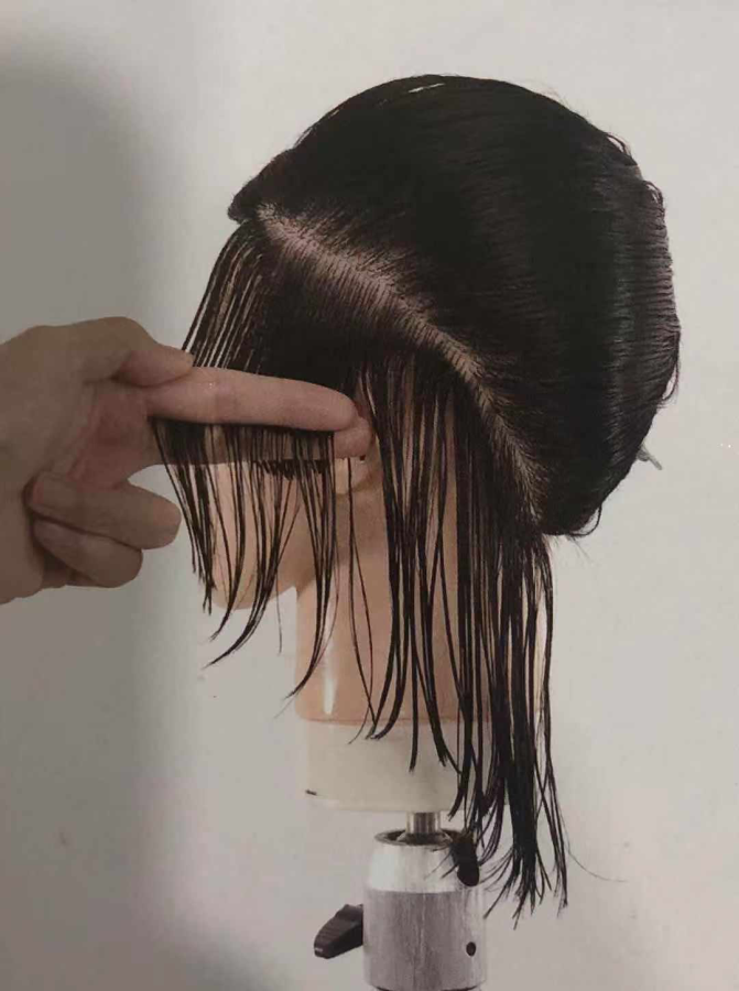 6. 跟随头型由前向后由高而低圆形堆积重量技术修剪。
