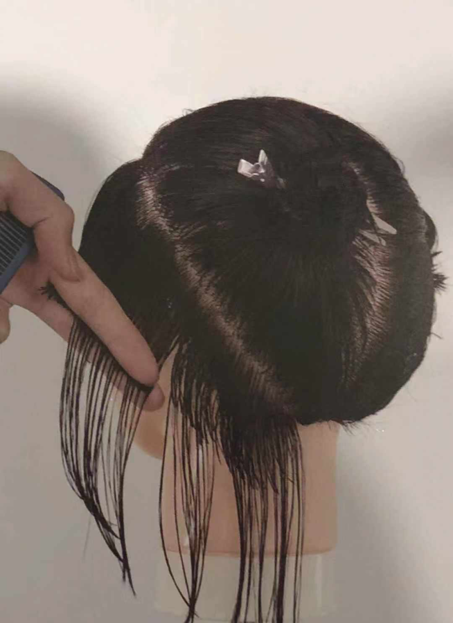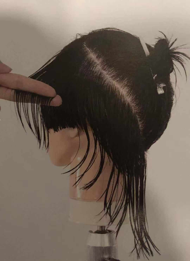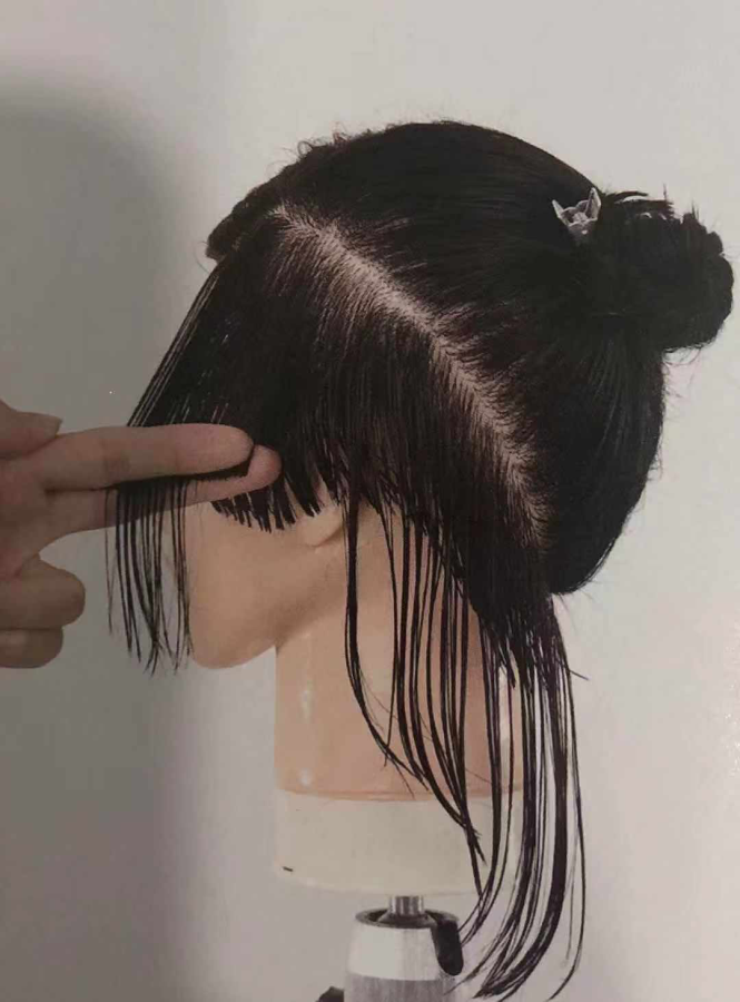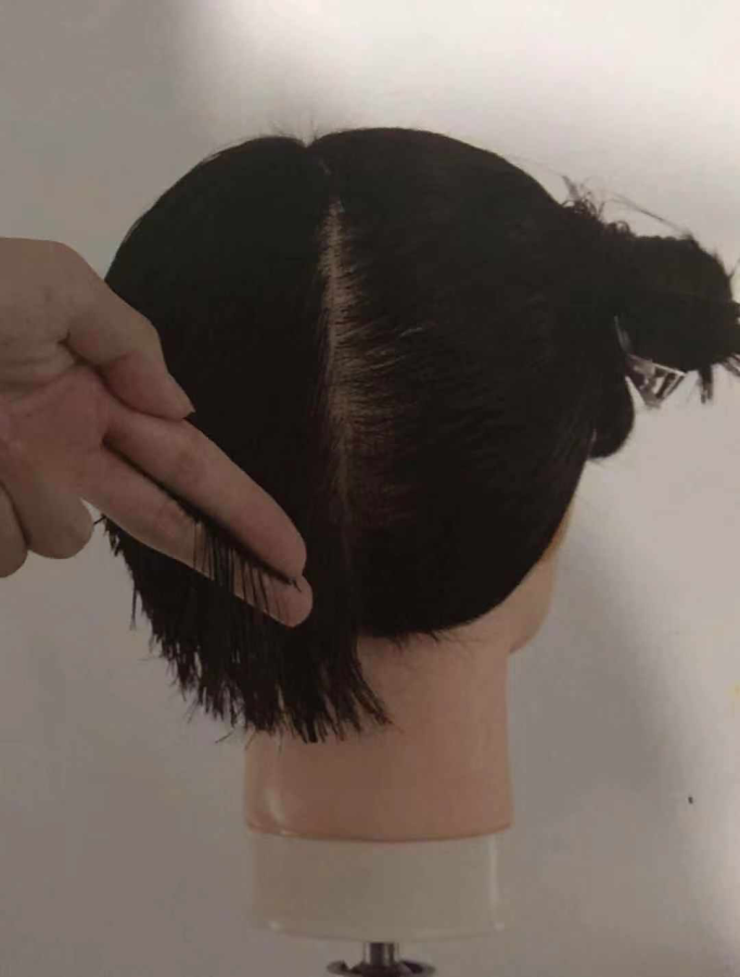 12. 发旋处的发量注意头发的自然垂落点,剪切口要小。