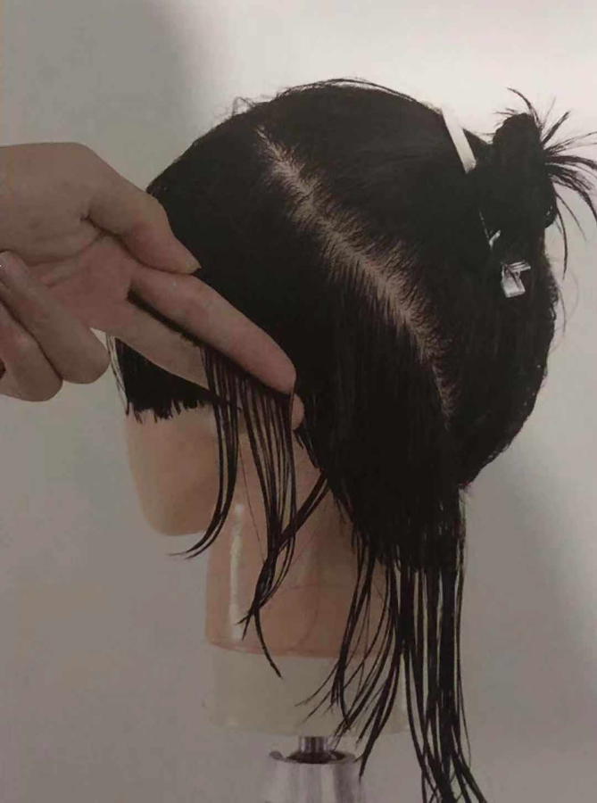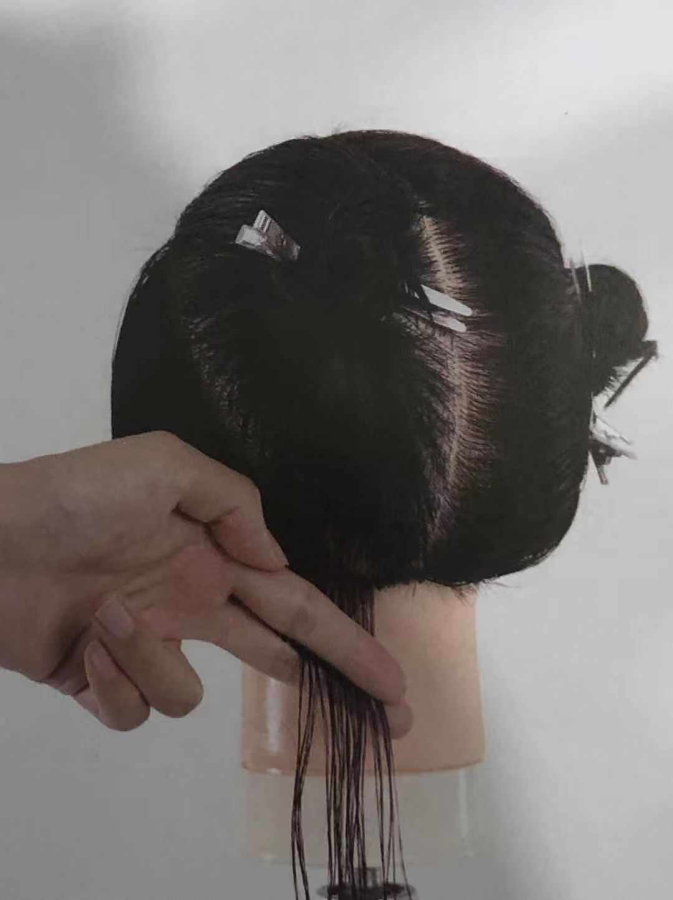 4. 第3片斜线分区至颈部发角内,角度不变手位提升。