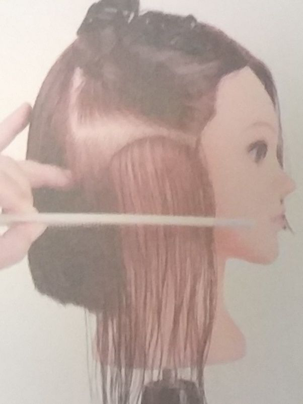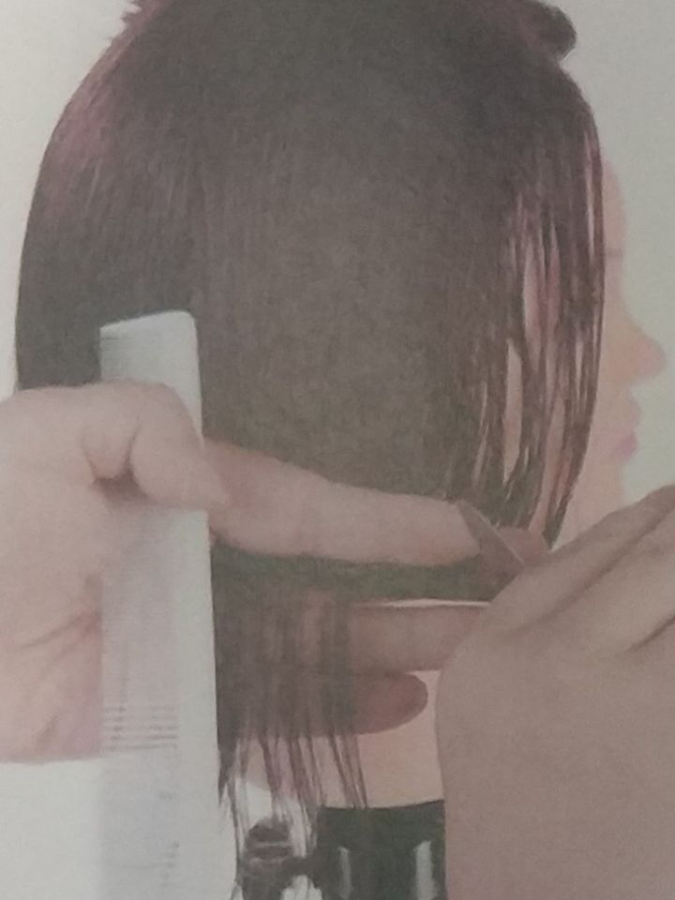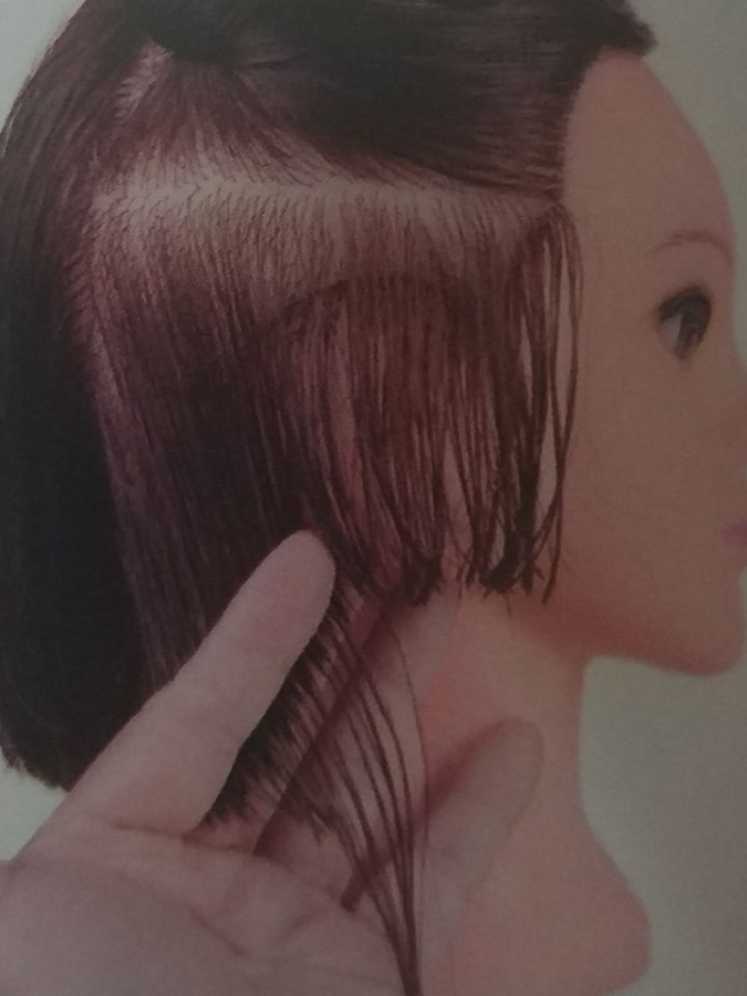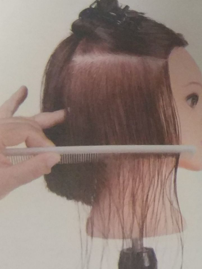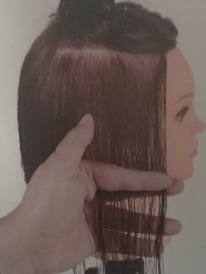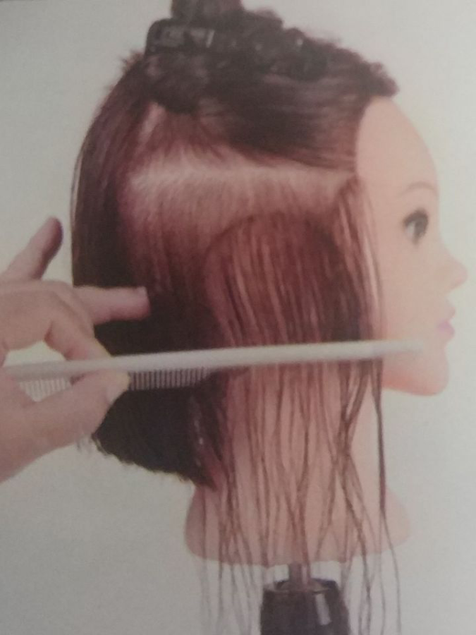 按照导线进行修剪。要求分份线、梳子和切口保持水平。