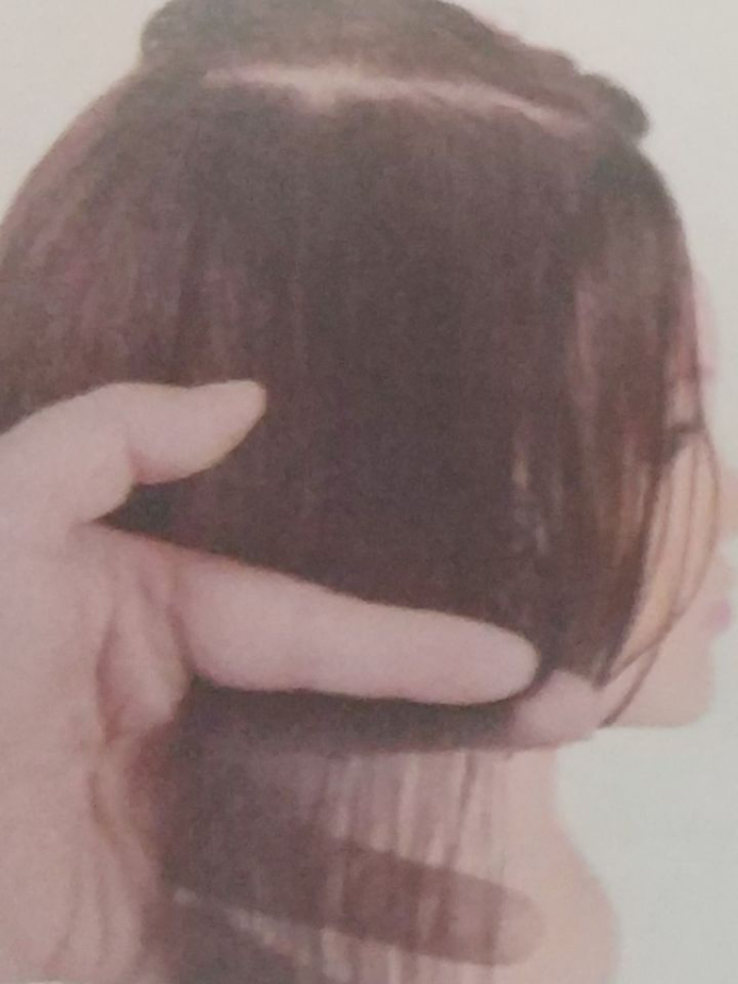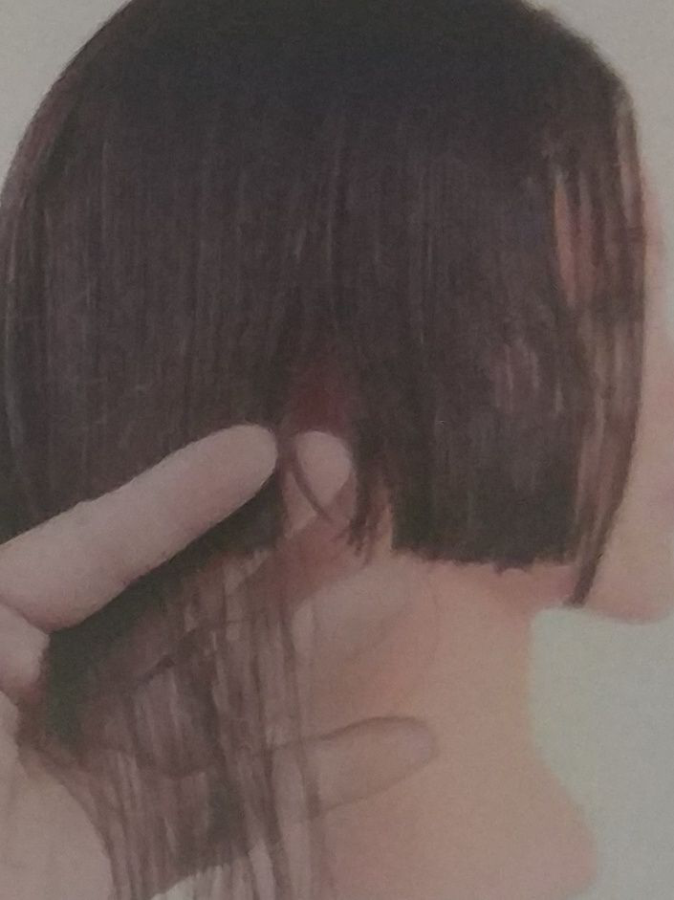 修剪后对比左右两侧的头发长短是否一致,若不一致请以较短一侧的发束为标准进行再一次的修剪。