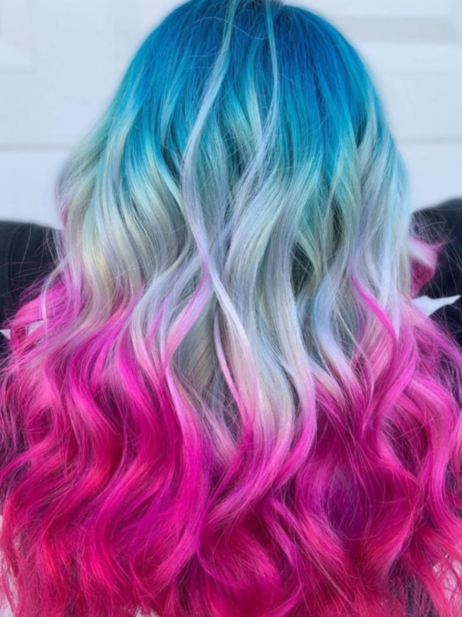 升级带有一些奇特的,不自然的颜色的长分层鲍勃是一个真实的声明。请注意,浅粉色的色调是如何通过使用粉红色调来补充的。就是漂亮。