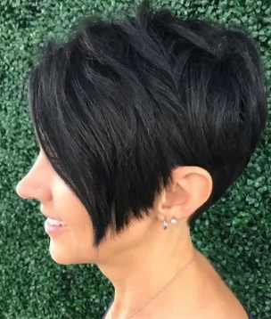这种断断续续的剪裁的特点是前部最长,而后部则逐渐减小。外观很容易从较长的头发过渡到完整的假发剪裁,因为脸部框架的长度使它看起来几乎像鲍勃一样,但颈背却是短剪发。